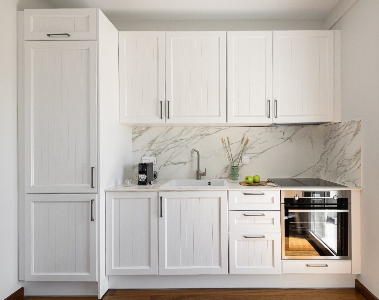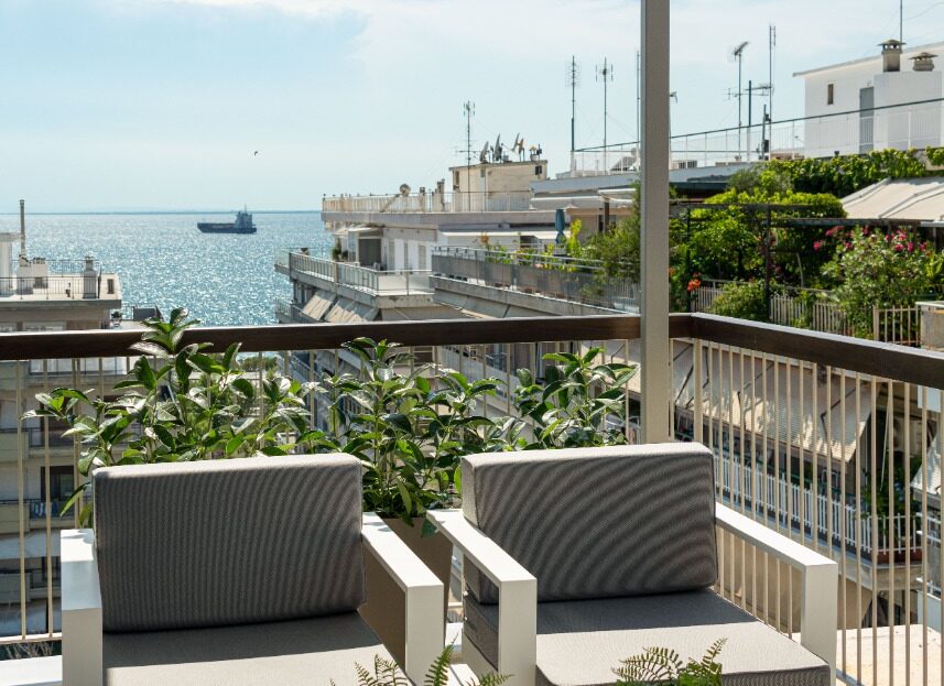 The 102 sq.m. apartment is located on the 7th floor of an apartment building, in the center of Thessaloniki in an excellent and central location. In 2022, it will be completely renovated together with the other three apartments on the same floor. The common areas of the floor are also being completely reconstructed, new central water supply and drainage pipes are also being installed and a proper electrical installation has been carried out.