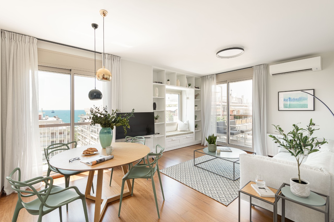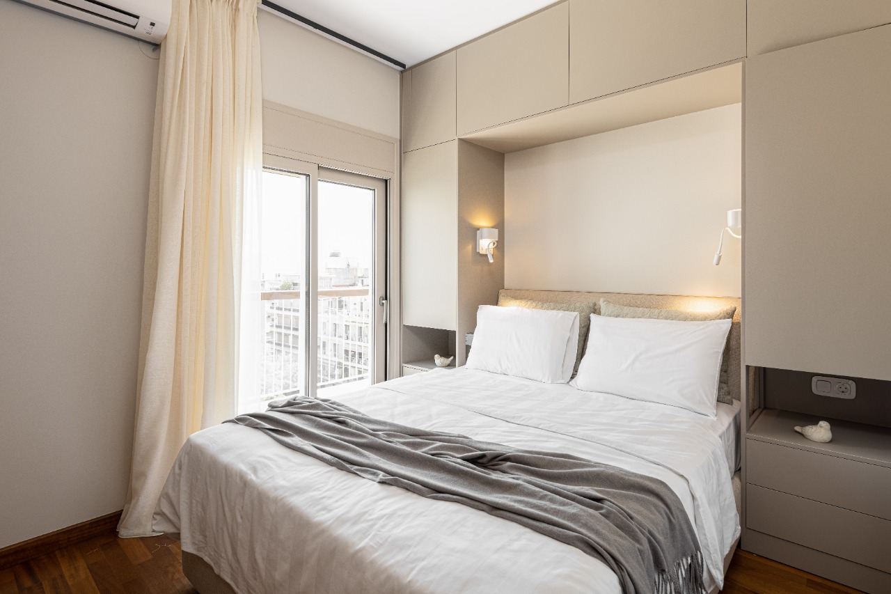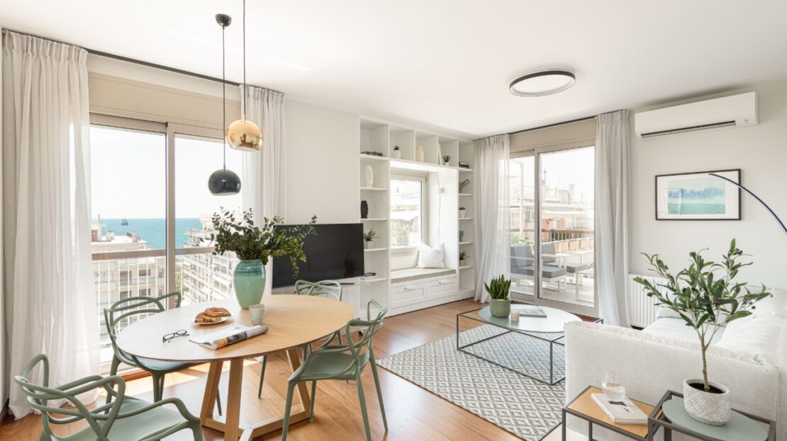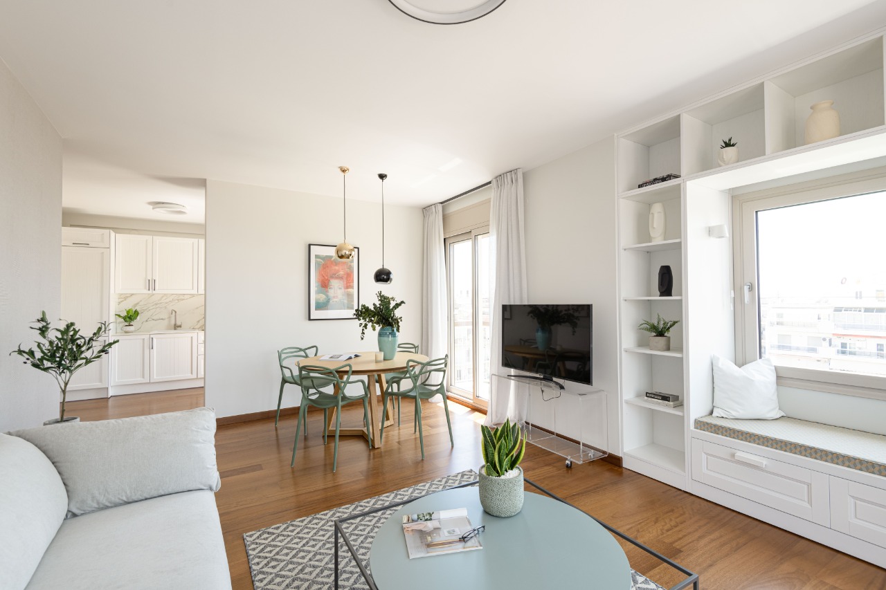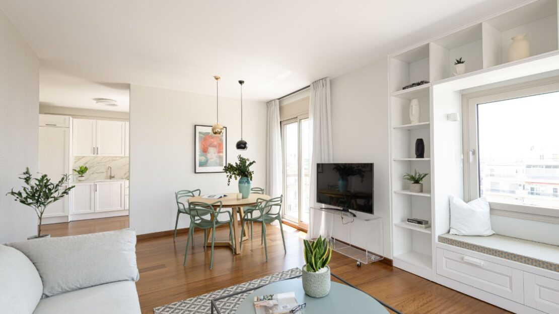 It consists of a living room, kitchen, 2 bedrooms, 2 bathrooms and a 35 sq m balcony. It will be fully furnished and equipped, with autonomous natural gas heating and air conditioners in every area. The windows will have energy efficient double glazing.