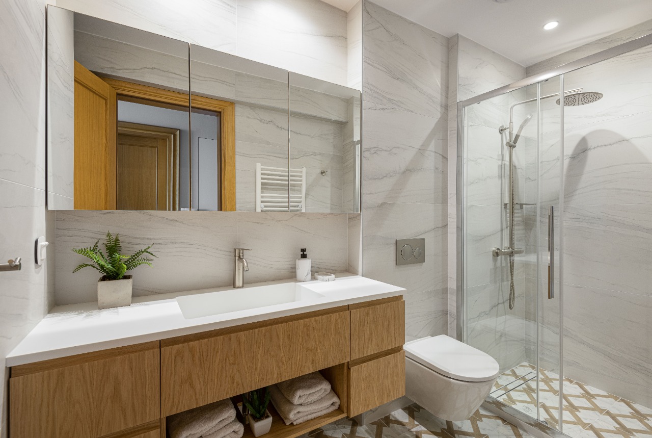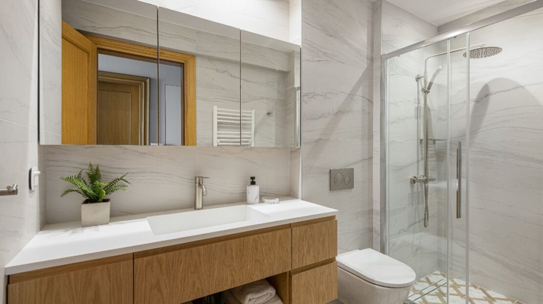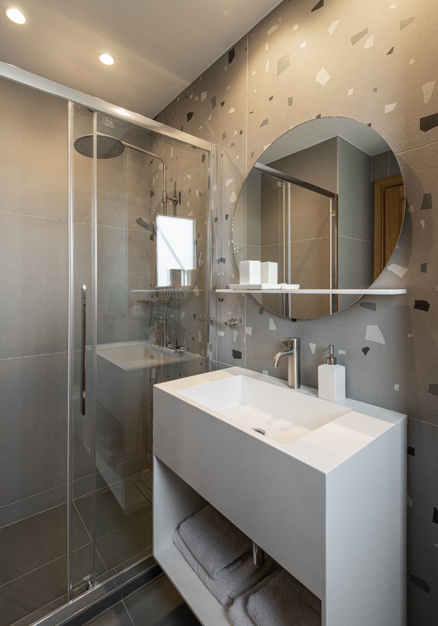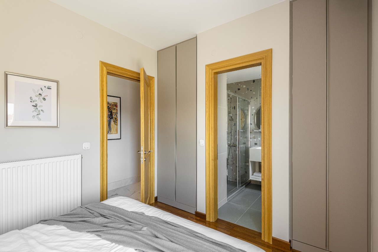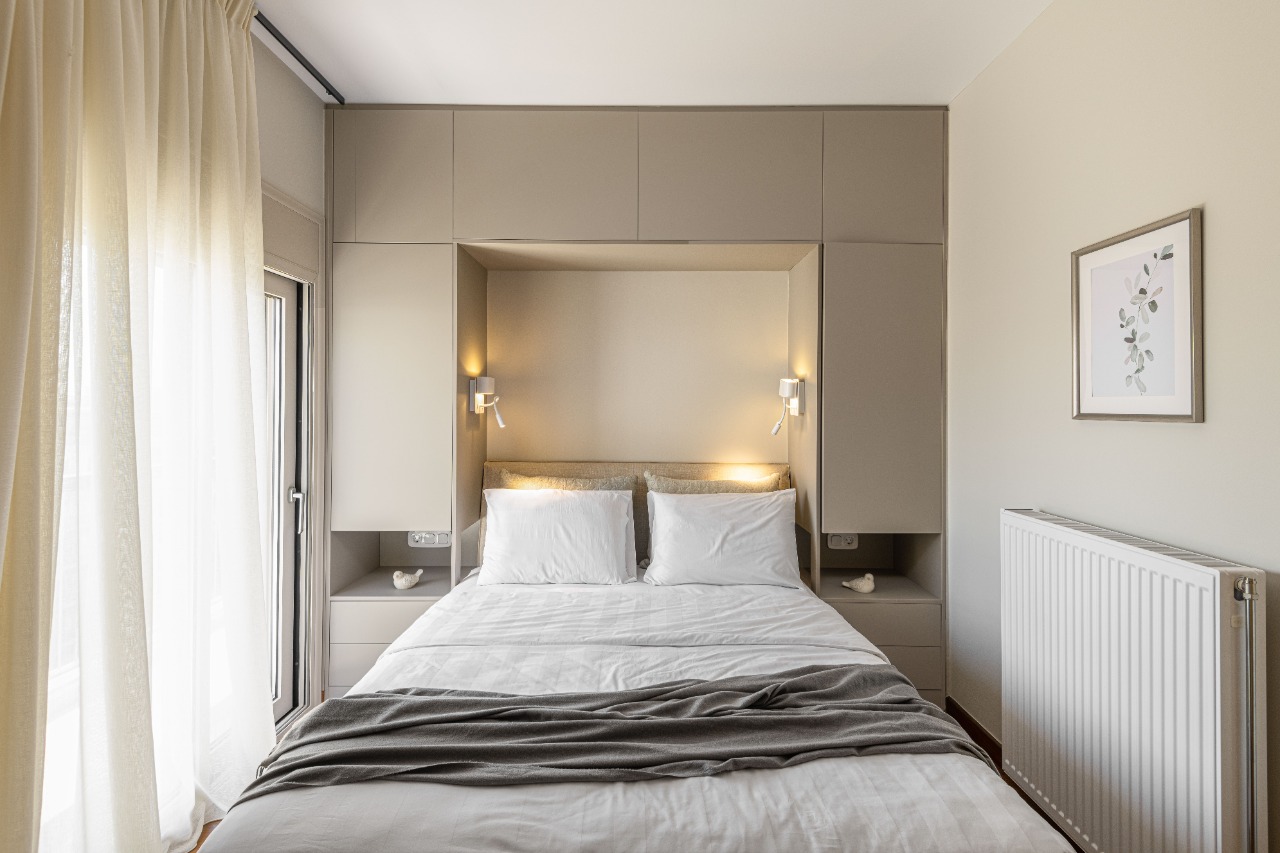 It consists of a living room, kitchen, 2 bedrooms, 2 bathrooms and a 35 sq m balcony. It will be fully furnished and equipped, with autonomous natural gas heating and air conditioners in every area. The windows will have energy efficient double glazing.