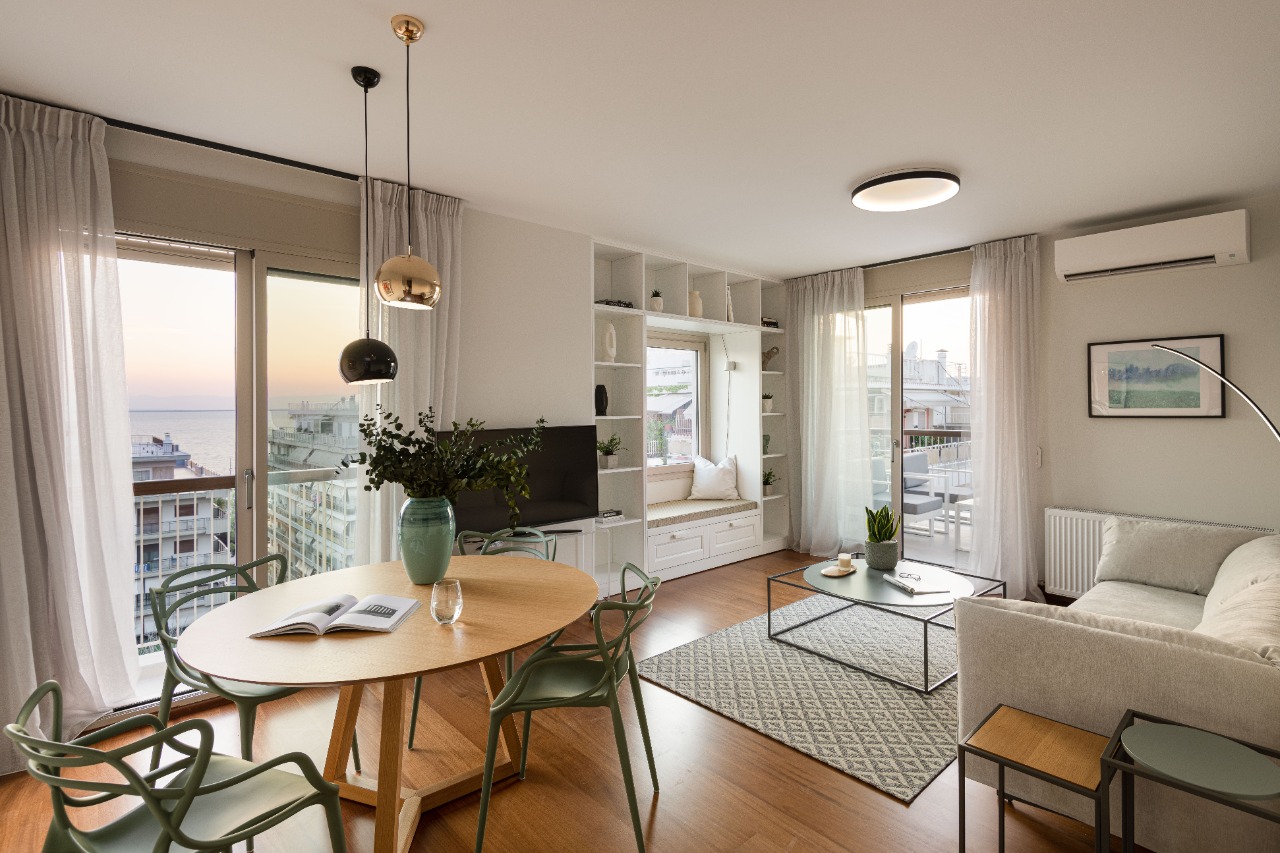 The apartment is 240 meters from the sea, 4.2 km from the most central square – landmark of the city, Aristotelous Square, 3.4 km from the Aristotle University of Thessaloniki, 3 km from the University of Macedonia and 12.5 km from the International State Airport of Thessaloniki “Macedonia”.