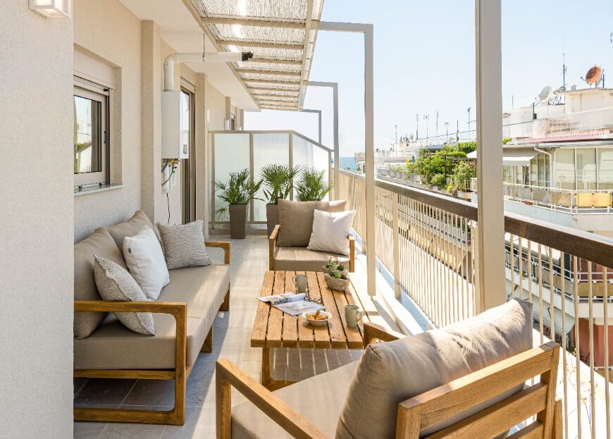 The apartment is 240 meters from the sea, 4.2 km from the most central square – landmark of the city, Aristotelous Square, 3.4 km from the Aristotle University of Thessaloniki, 3 km from the University of Macedonia and 12.5 km from the International State Airport of Thessaloniki “Macedonia”.