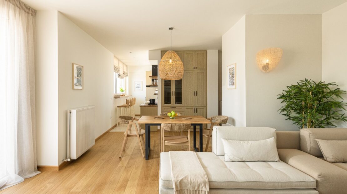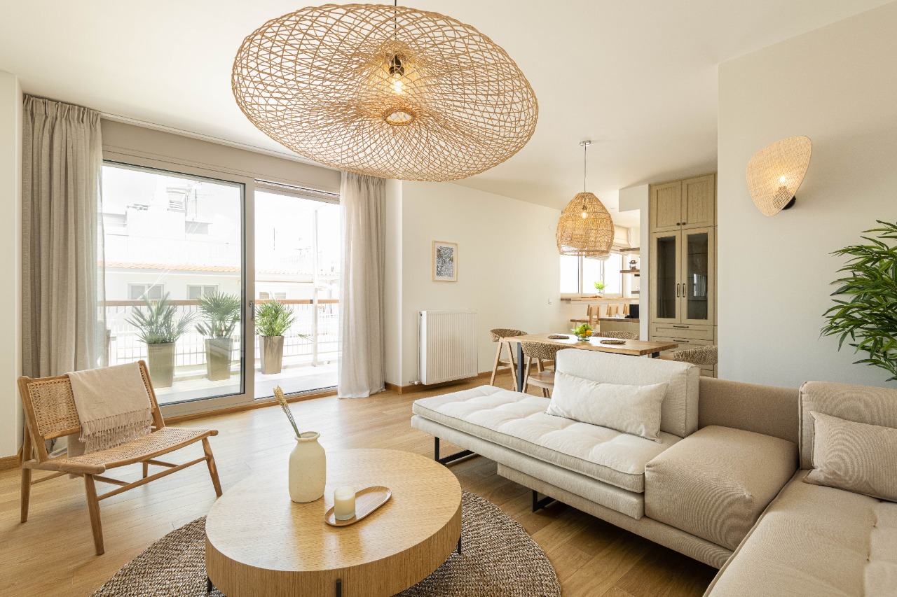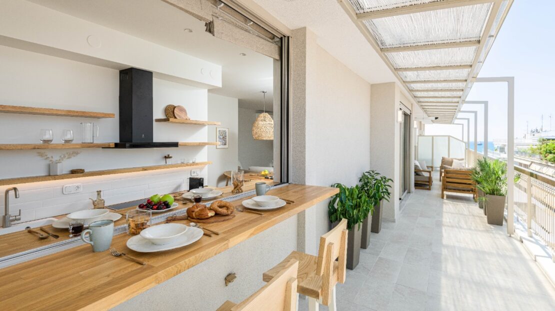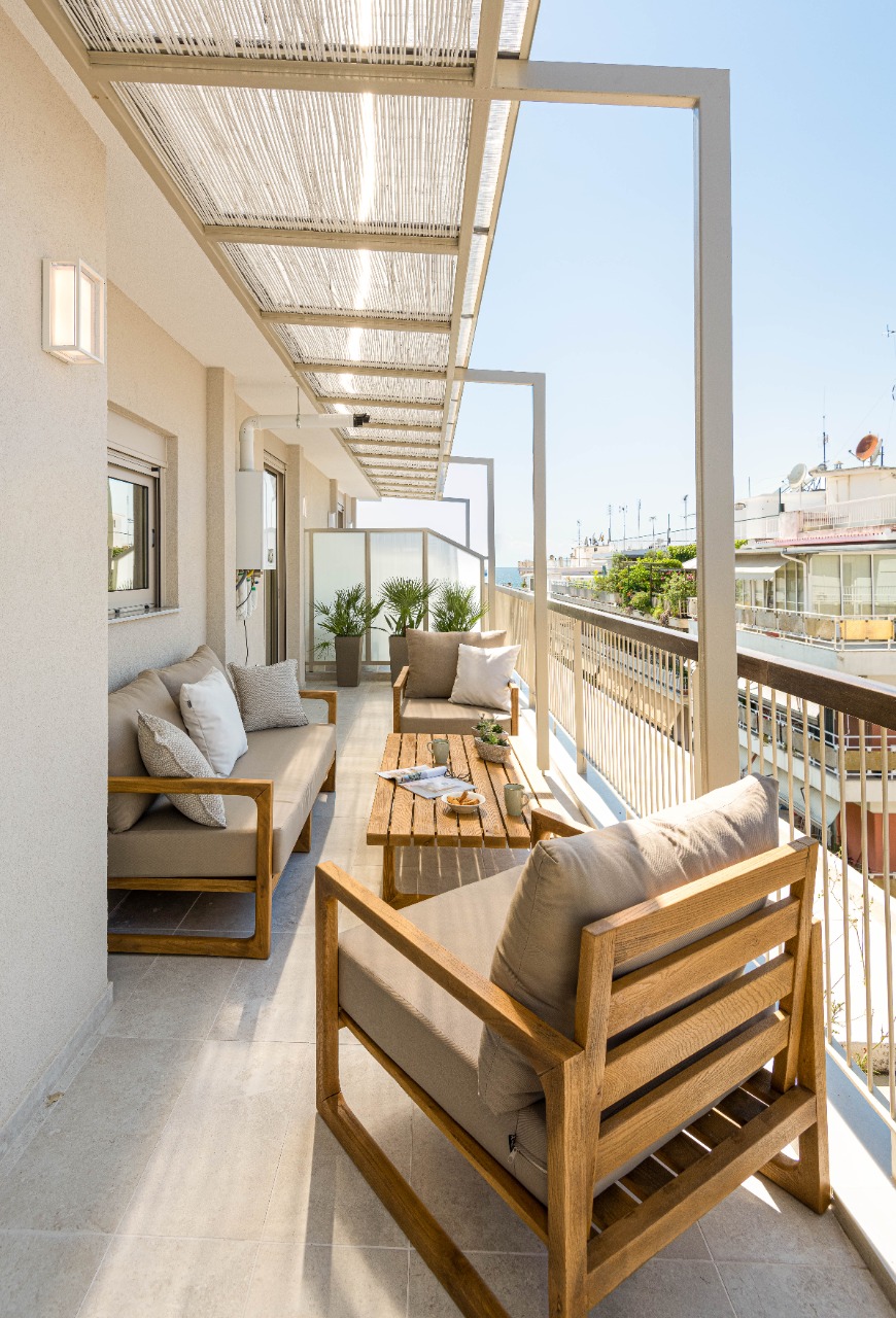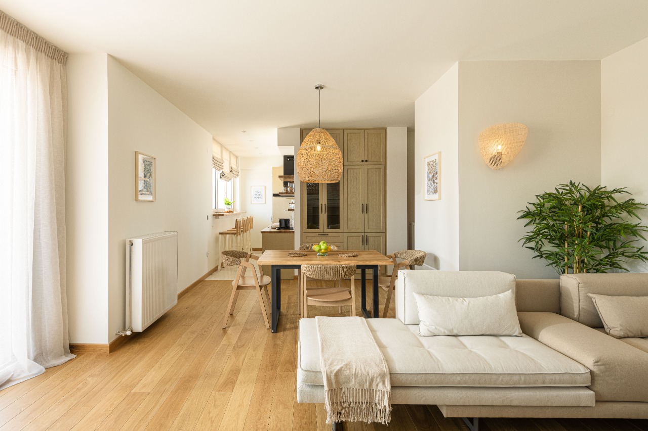 It consists of a living room, kitchen, bedroom, bathroom and a balcony of 40 sqm. It will be fully furnished and equipped, with autonomous natural gas heating and air conditioners in every area. The windows will have energy efficient double glazing.