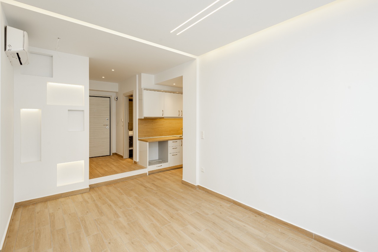 The 45 sq.m. renovated luxury apartment, 2nd floor, located in the center of Thessaloniki in an excellent and central location. It consists of a living room, kitchen, bedroom, bathroom. It is fully furnished and equipped and has air conditioners in every area. The windows have energy efficient double glazing.
