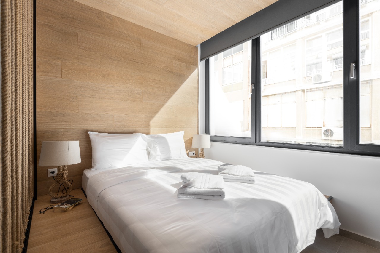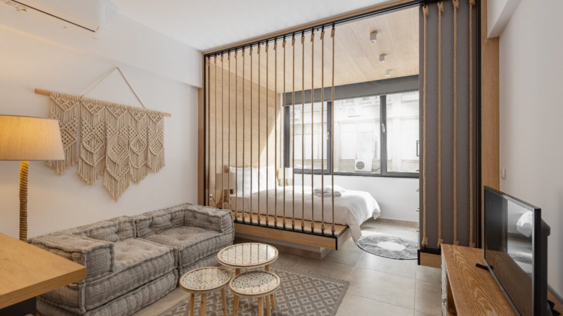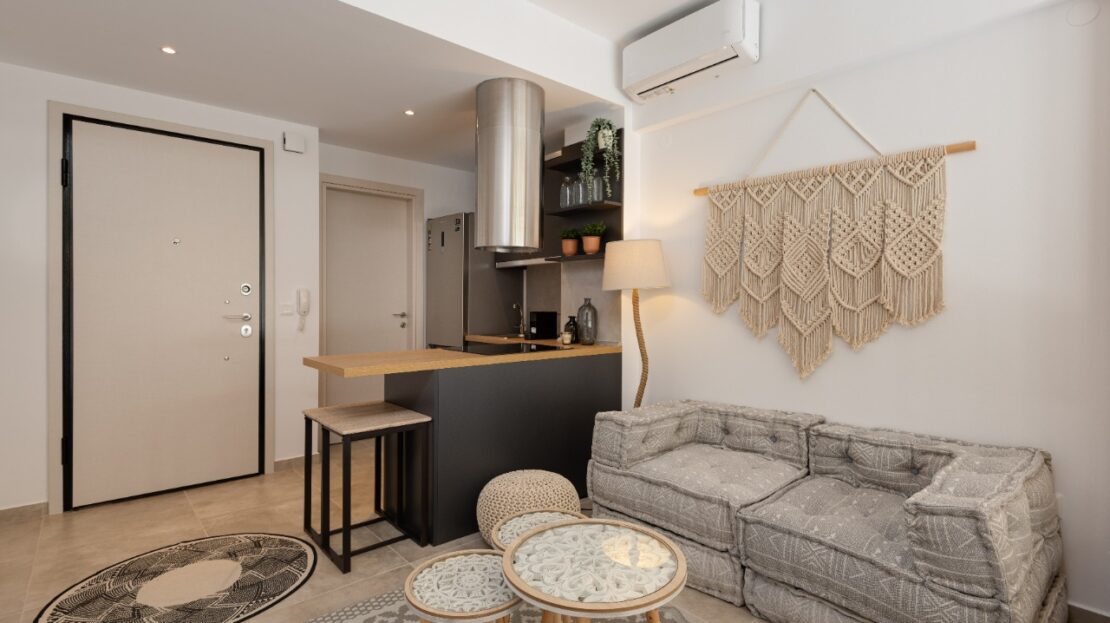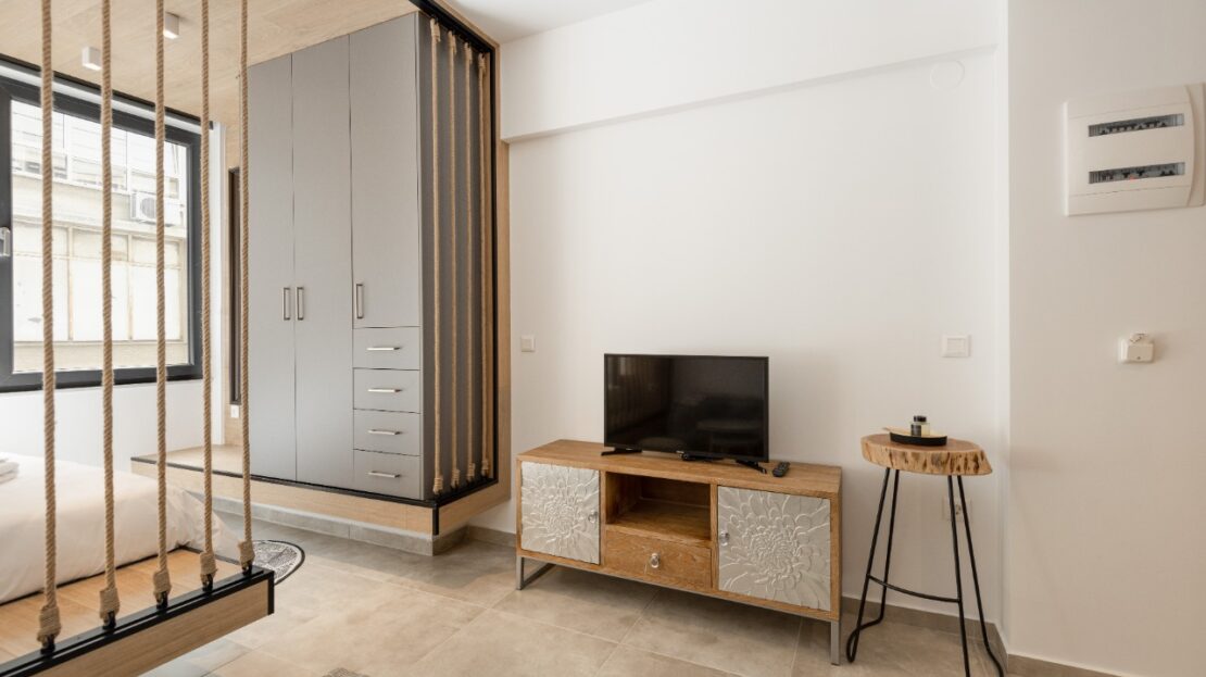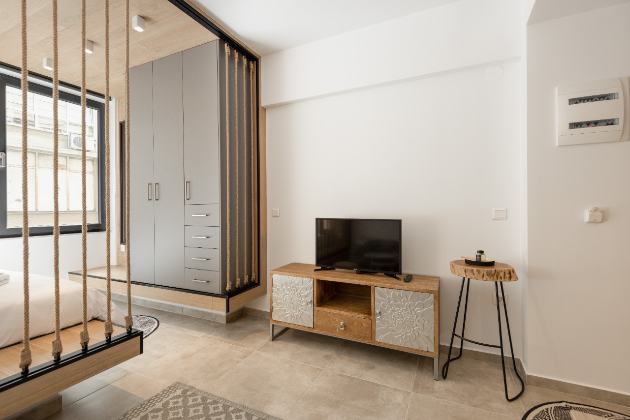 The 35 sq.m. renovated luxury studio, 3rd floor, located in the center of Thessaloniki in an excellent and central location. It consists of a living room, kitchen, bedroom, bathroom. It is fully furnished and equipped and has air conditioners in every area. The windows have energy efficient double glazing.
