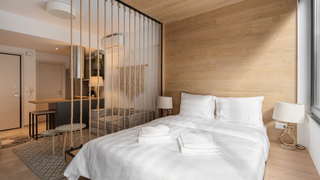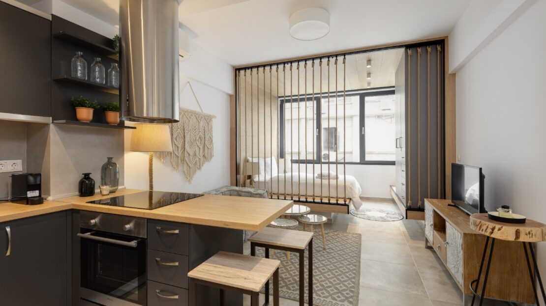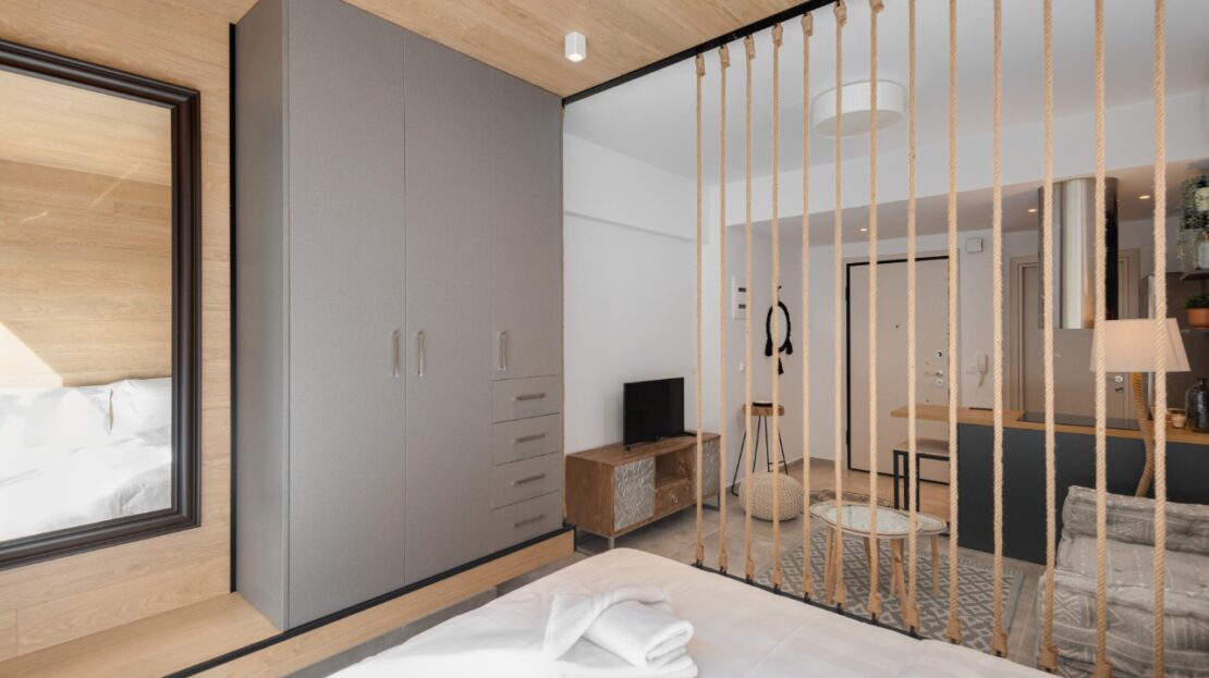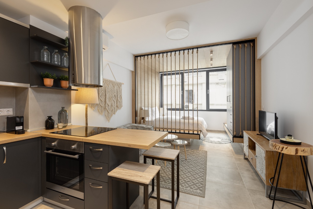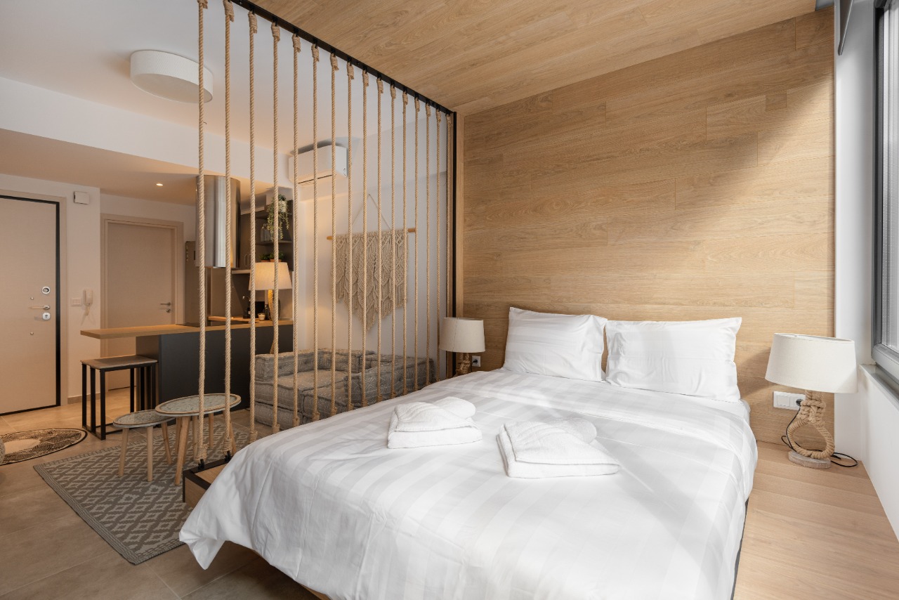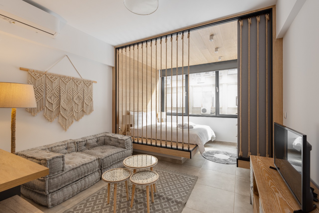 The 35 sq.m. renovated luxury studio, 3rd floor, located in the center of Thessaloniki in an excellent and central location. It consists of a living room, kitchen, bedroom, bathroom. It is fully furnished and equipped and has air conditioners in every area. The windows have energy efficient double glazing.