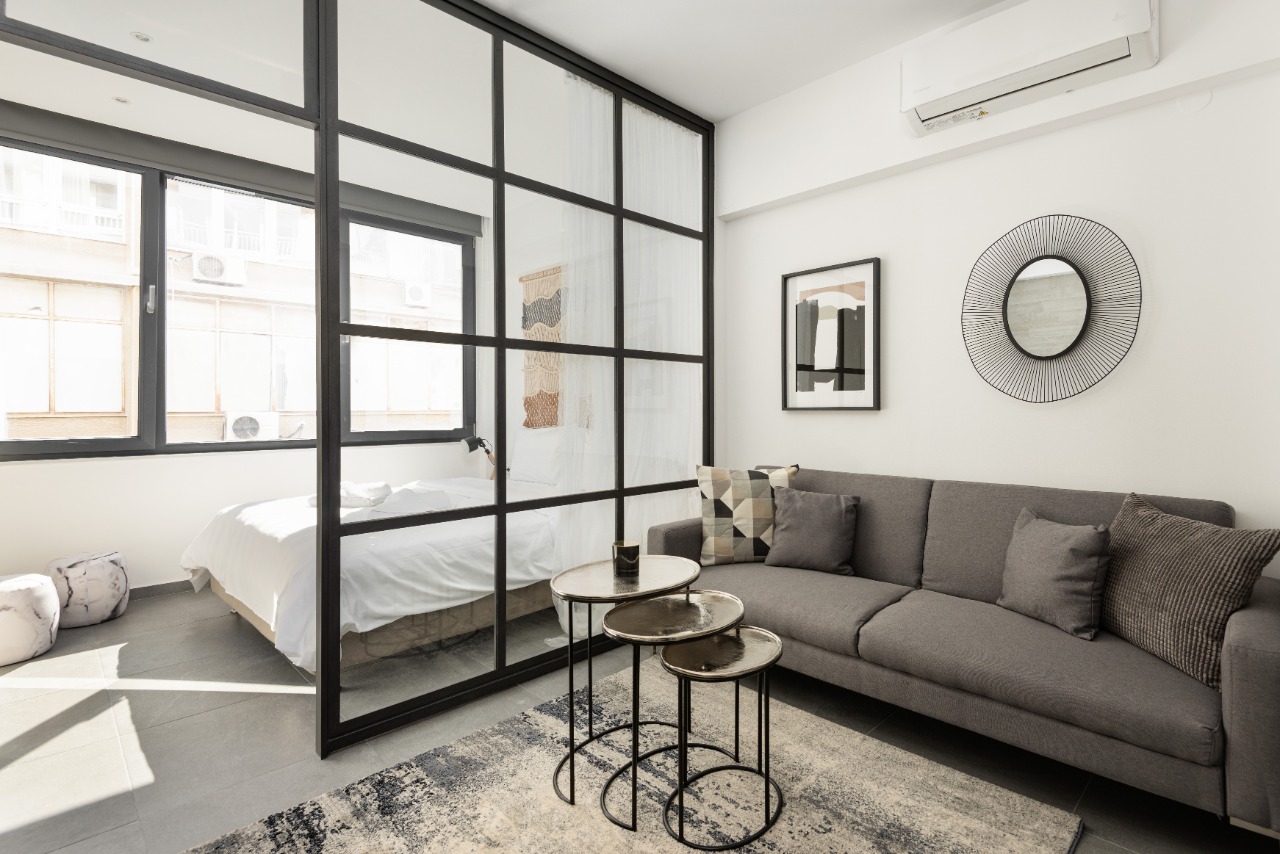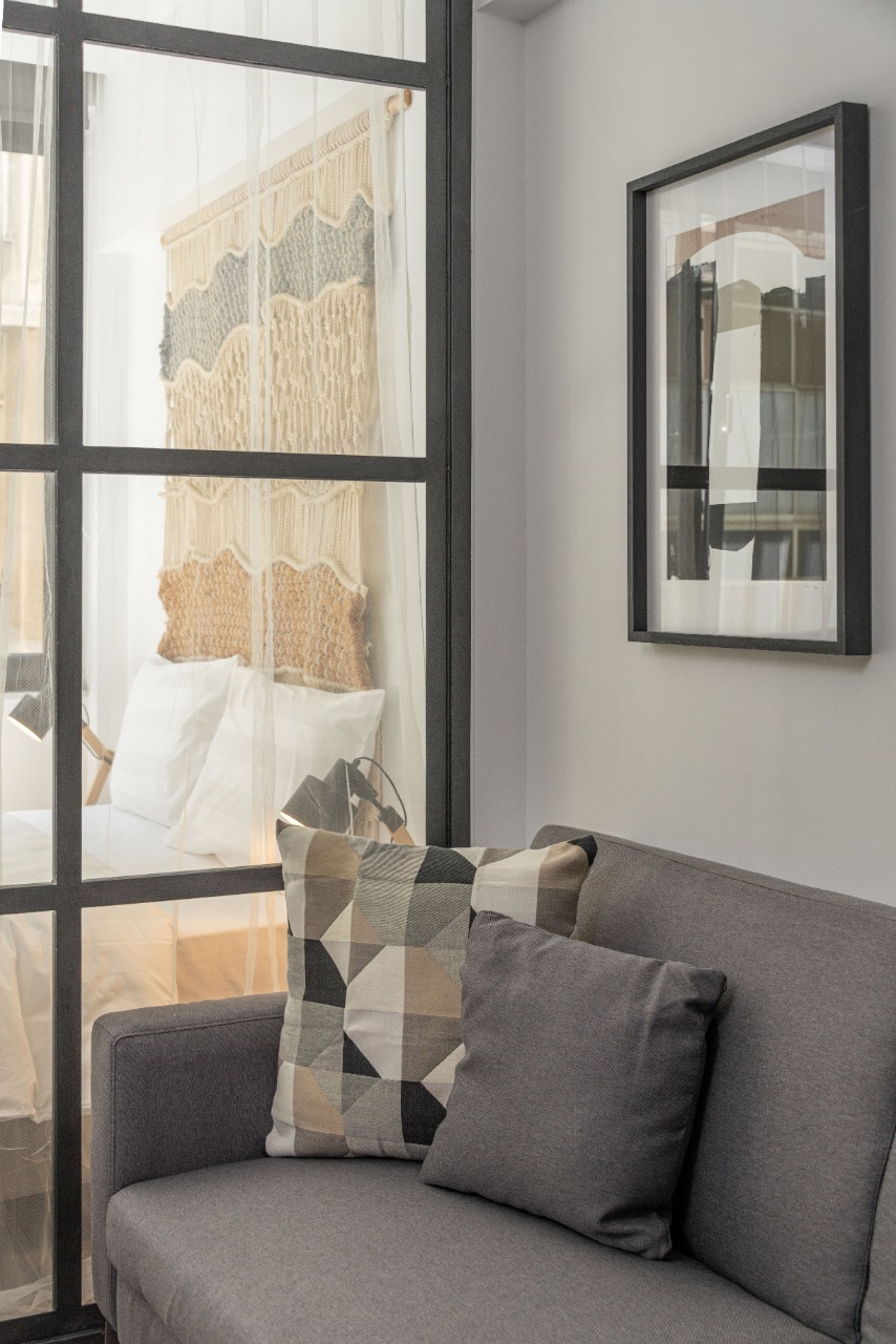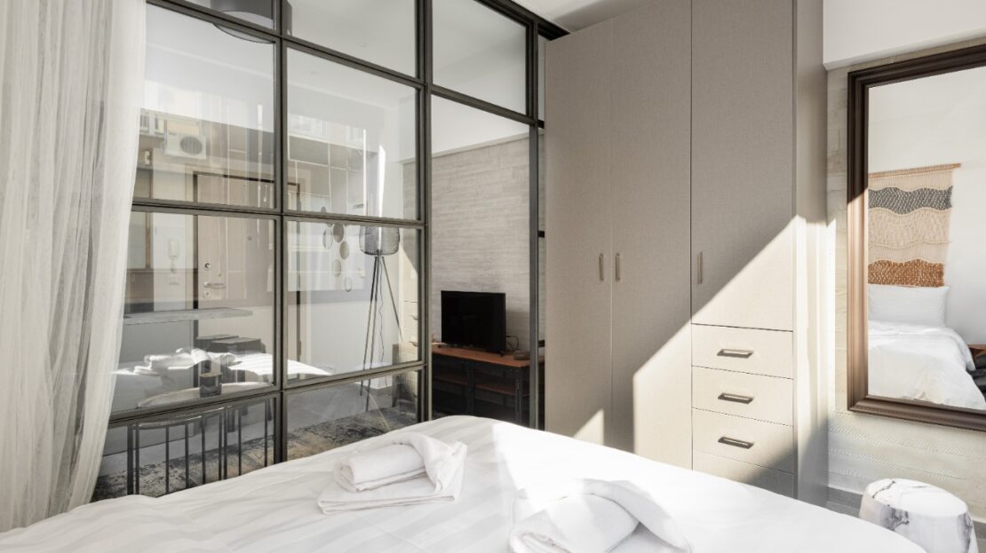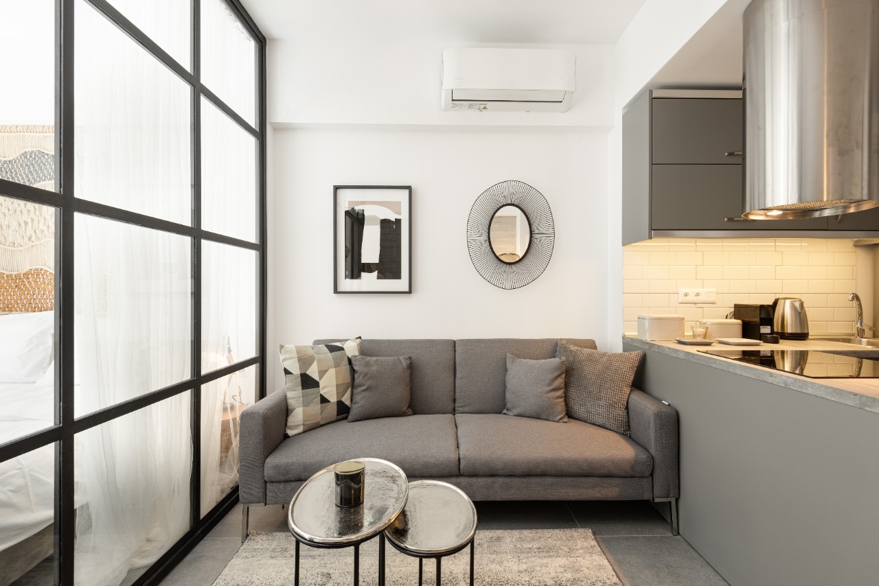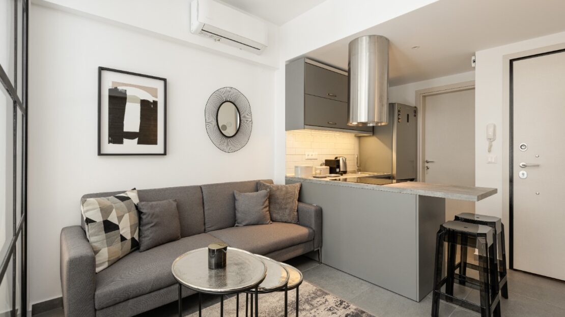 The 35 sq.m. renovated luxury studio, 3rd floor, located in the center of Thessaloniki in an excellent and central location. It consists of a living room, kitchen, bedroom, bathroom. It is fully furnished and equipped and has air conditioners in every area. The windows have energy efficient double glazing.