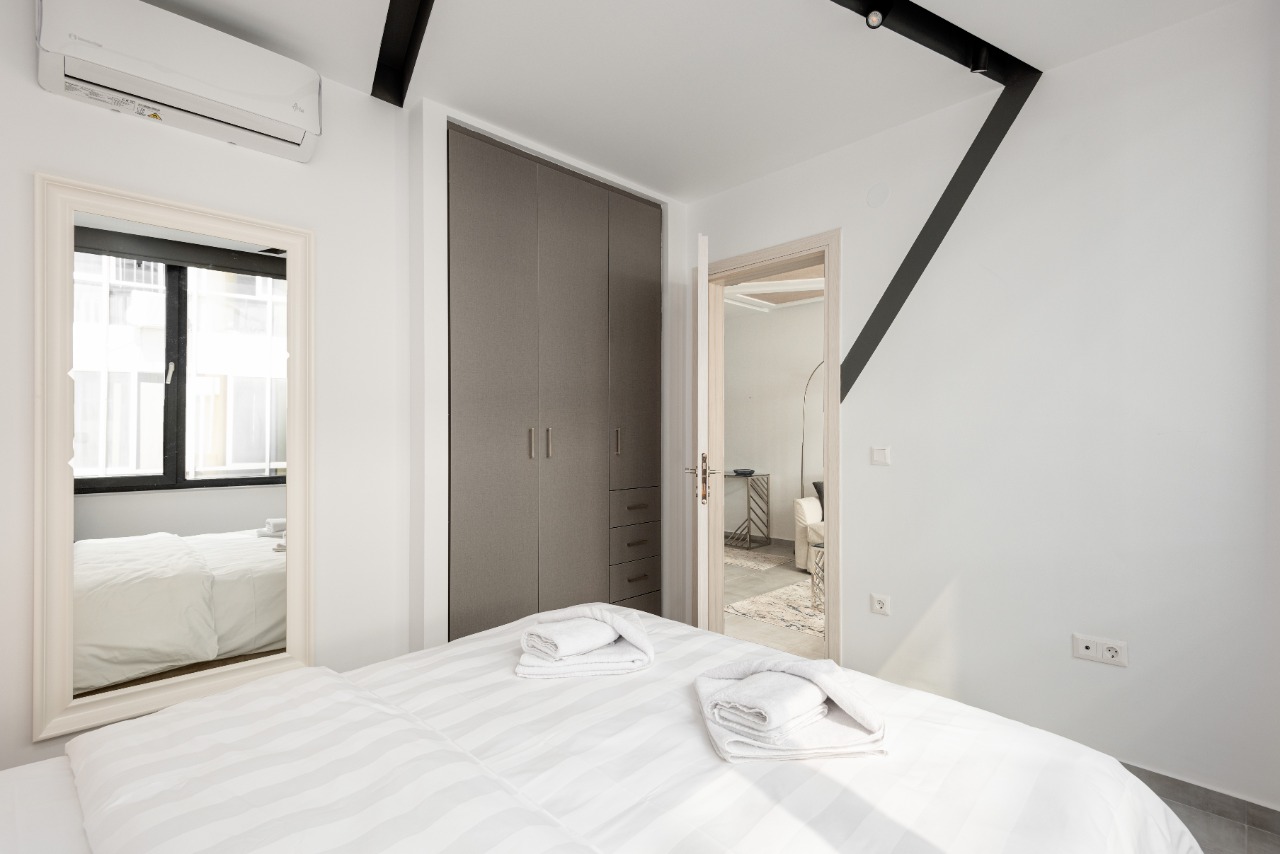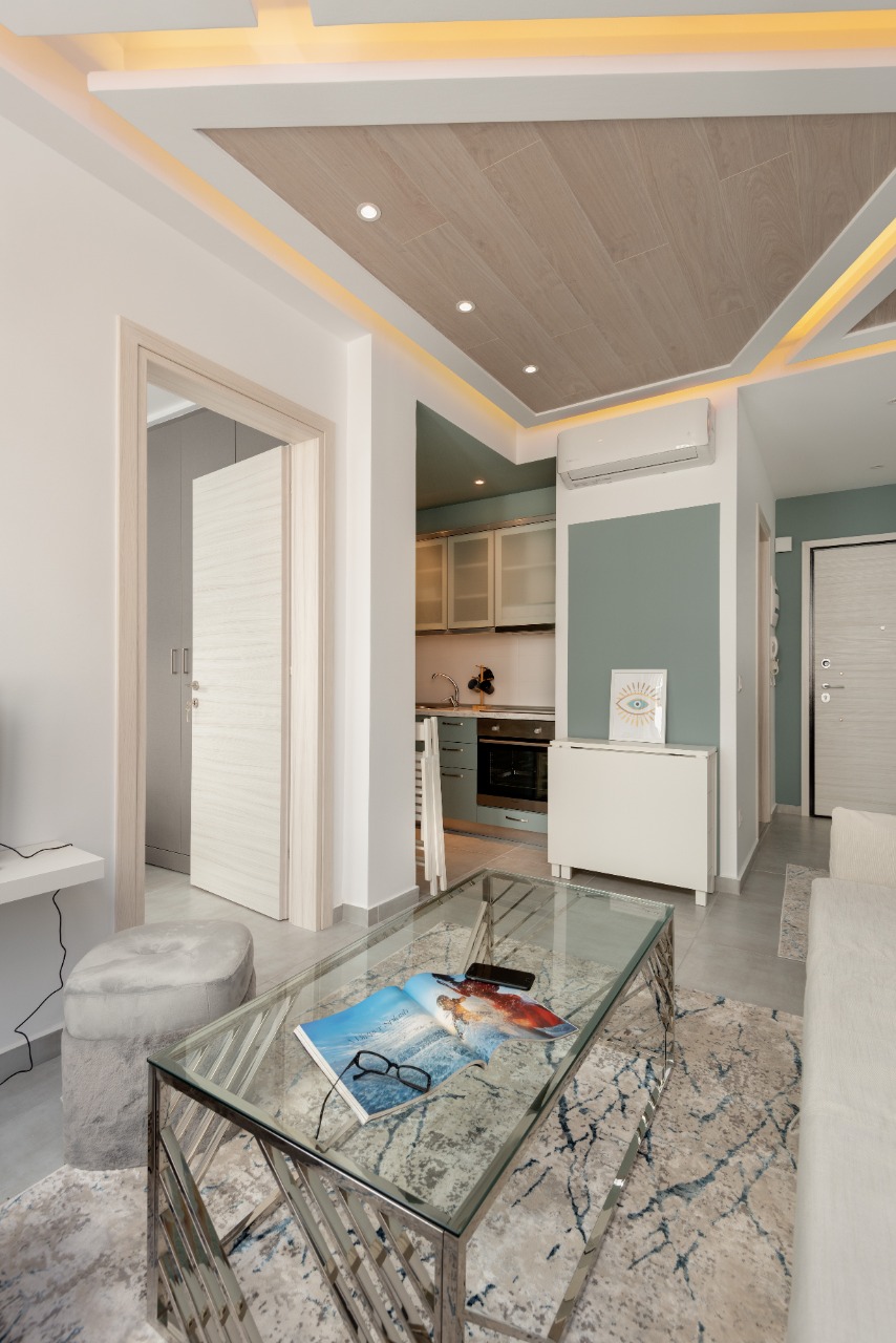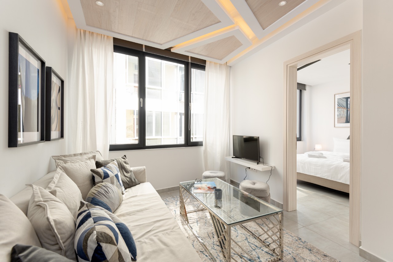 The 45 sq.m. renovated luxury apartment, 3rd floor, located in the center of Thessaloniki in an excellent and central location. It consists of a living room, kitchen, bedroom, bathroom. It is fully furnished and equipped and has air conditioners in every area. The windows have energy efficient double glazing.