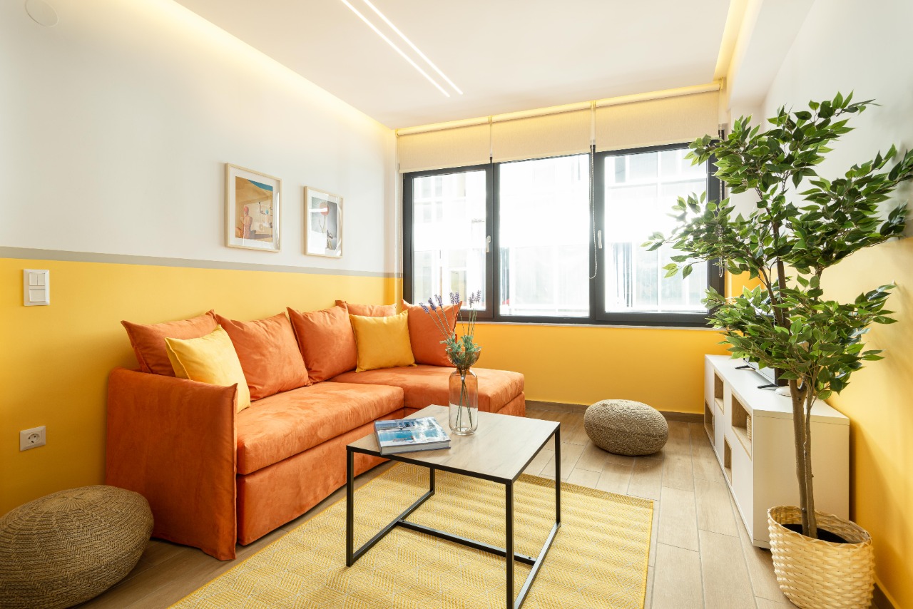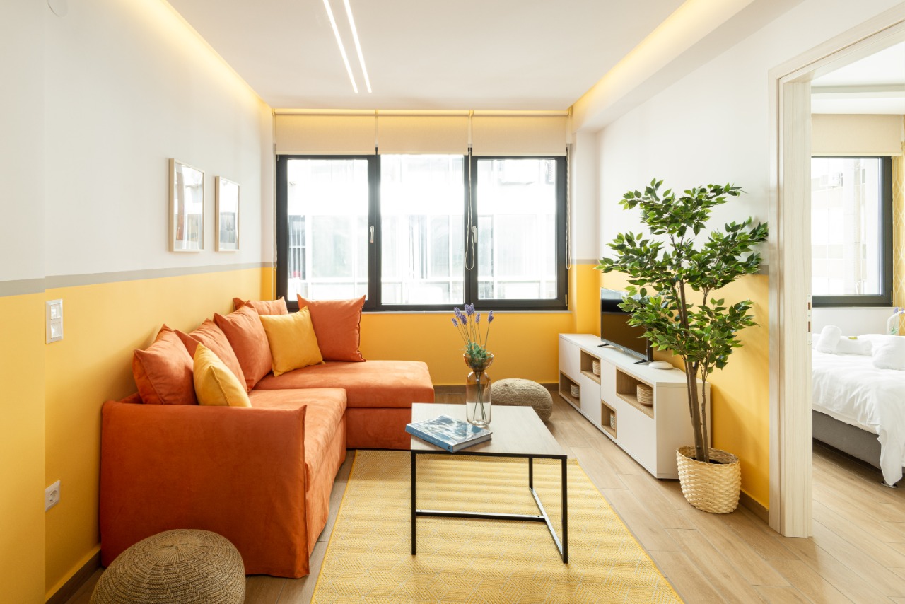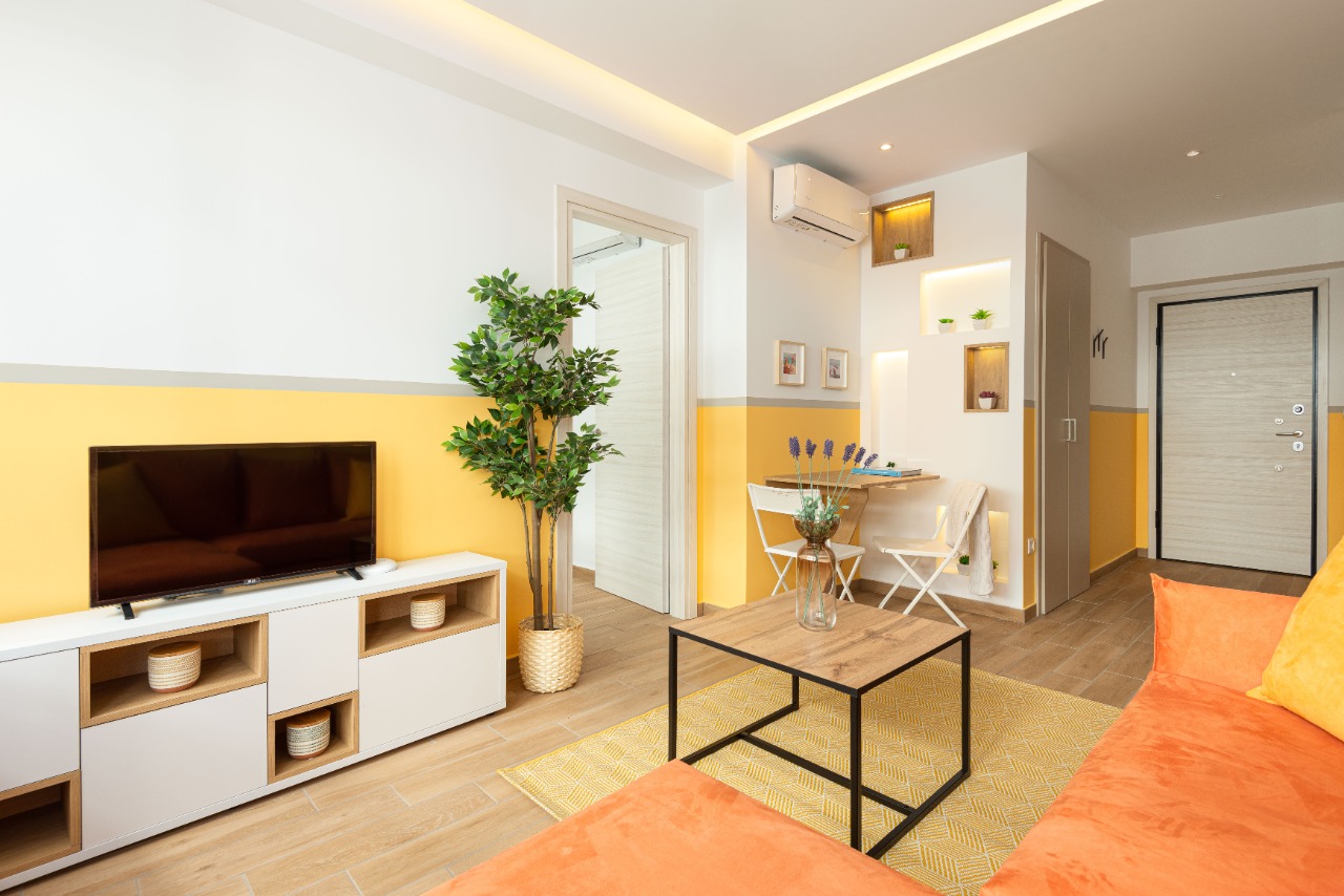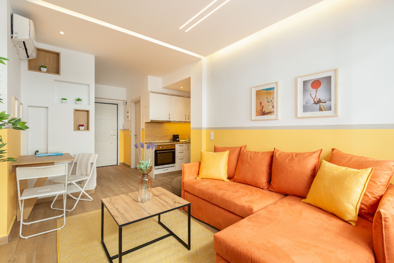 The 45 sq.m. renovated luxury apartment, 4th floor, located in the center of Thessaloniki in an excellent and central location. It consists of a living room, kitchen, bedroom, bathroom. It is fully furnished and equipped and has air conditioners in every area. The windows have energy efficient double glazing.