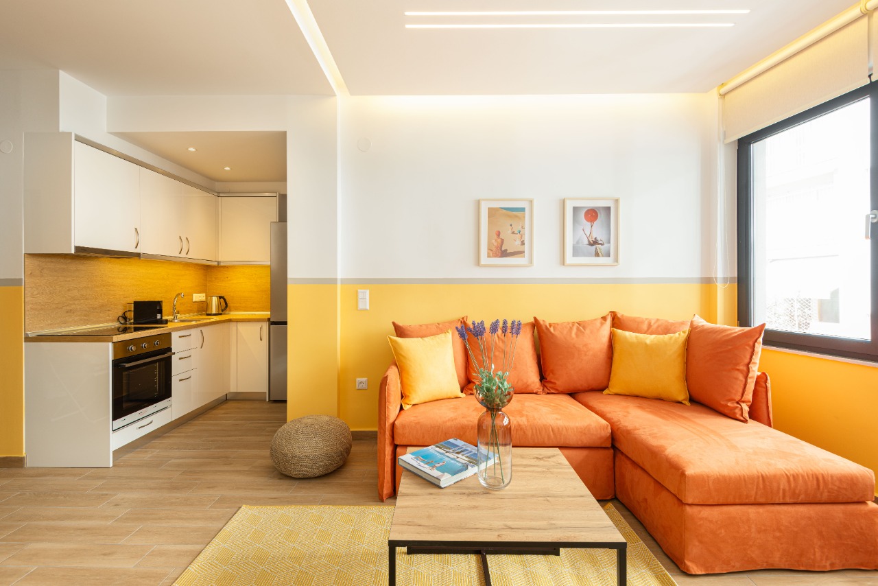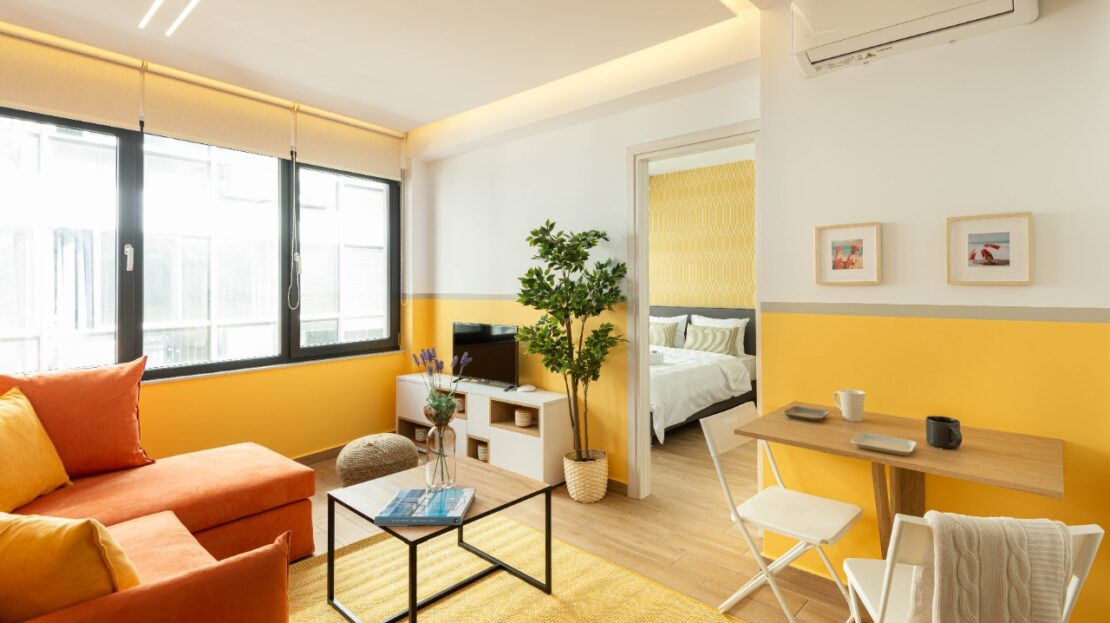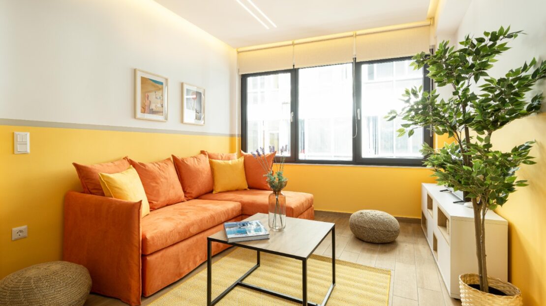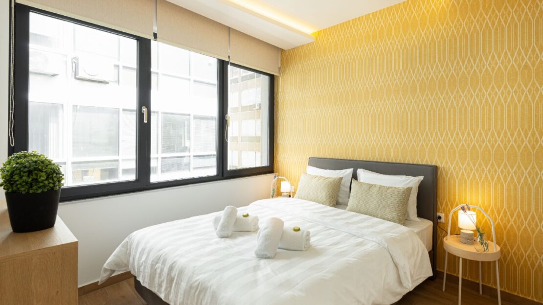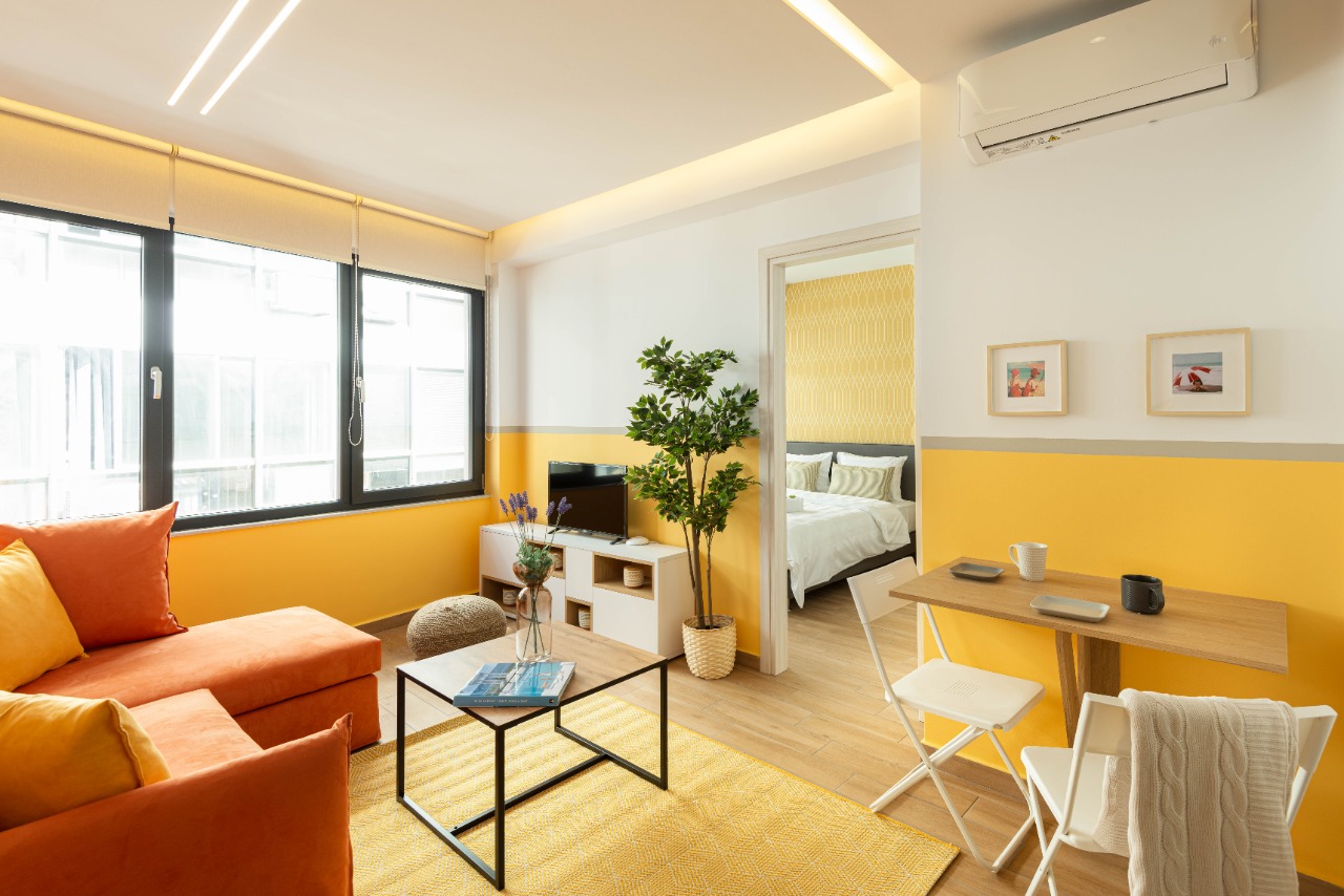 The 45 sq.m. renovated luxury apartment, 4th floor, located in the center of Thessaloniki in an excellent and central location. It consists of a living room, kitchen, bedroom, bathroom. It is fully furnished and equipped and has air conditioners in every area. The windows have energy efficient double glazing.